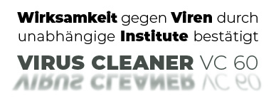 Aktuelle Studien und Untersuchungen zeigen, dass professionelle und hochwertige Luftreiniger, die mit effizienten und geprüften Filtrationsprinzipien ausgestattet sind, die Infektionsgefahr maßgeblich senken. Durch die einzigartige Kombination von hocheffizientem, elektrostatischen Hauptfilter und zusätzlichem HEPA-Filter schützt der Virus Cleaner VC 60 aktiv gegen Viren, Bakterien, Pollen und andere Keime. Die Belastung der Raumluft wird um mindestens 99,99% reduziert und das Infektionsrisiko so entscheidend minimiert. Der Luftreiniger Virus Cleaner VC 60 unterstützt als zusätzliche Schutzmaßnahme gegen COVID-19 die bekannten Infektionspräventionsmaßnahmen, wie Mund-Nasen-Schutz und Abstandsregelungen durch eine aktive Filterung der Raumluft.